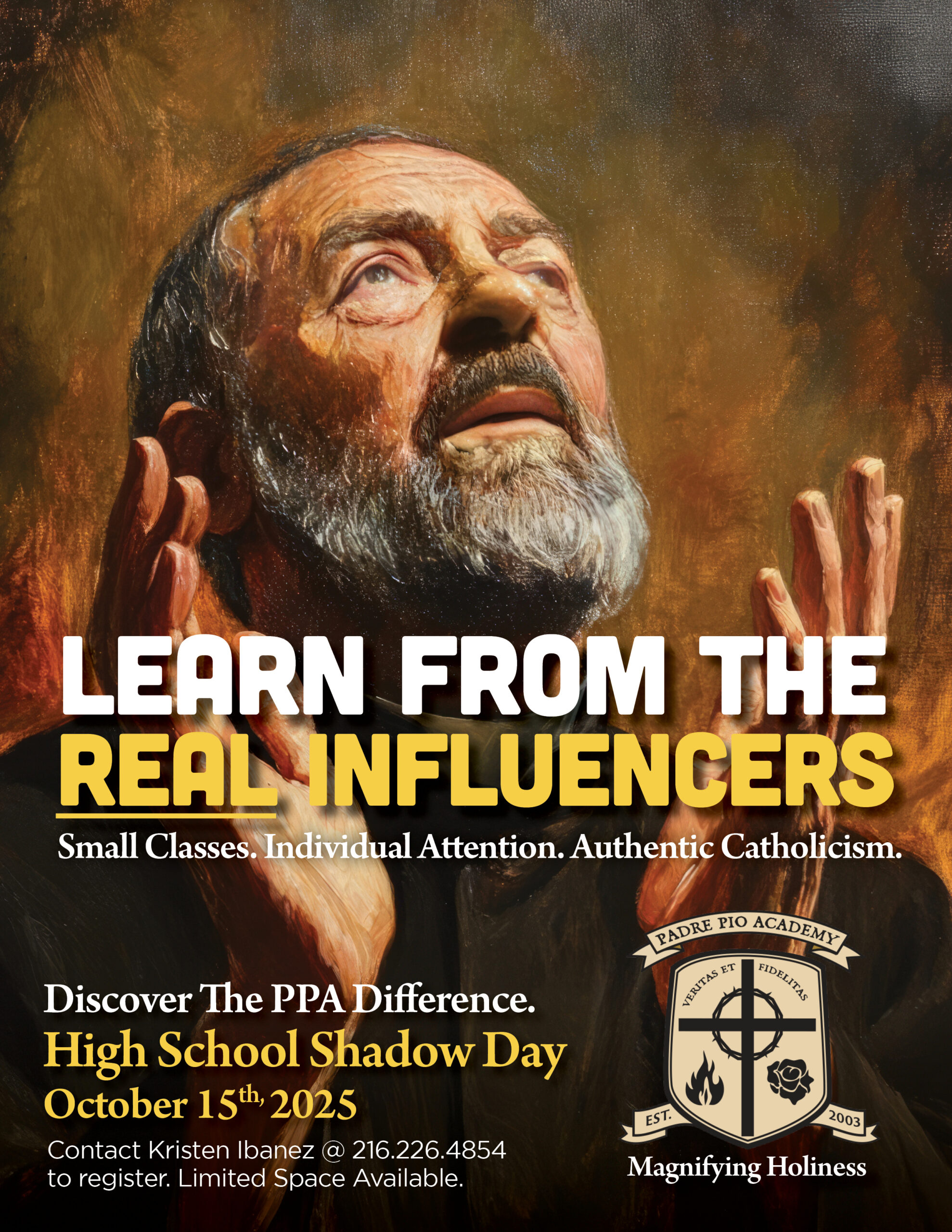 Padre Pio Academy 12920 Madison Ave, Lakewood, OHAt Padre Pio Academy, we teach students to extoll God’s greatness and to seek a state of holiness, amplified by a life of virtue, with the help of God’s grace, the action of the Holy Spirit, and a life of prayer. We invite interested families for the 25-26 school year to come and experience Padre […]