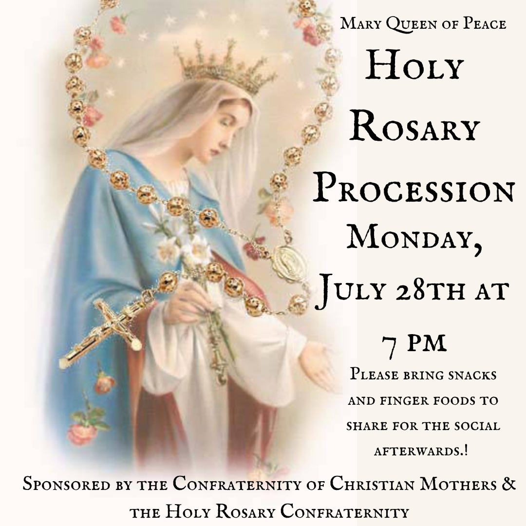 Join us for an outdoor Rosary Procession around the grounds of Mary Queen of Peace followed by a social after, with a few rounds of Rosary BINGO! Please bring a treat to share.